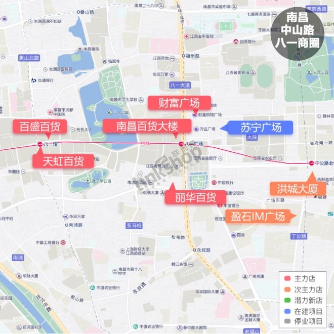 次主力店:洪城大廈,盈石IM廣場,八一萬達廣場