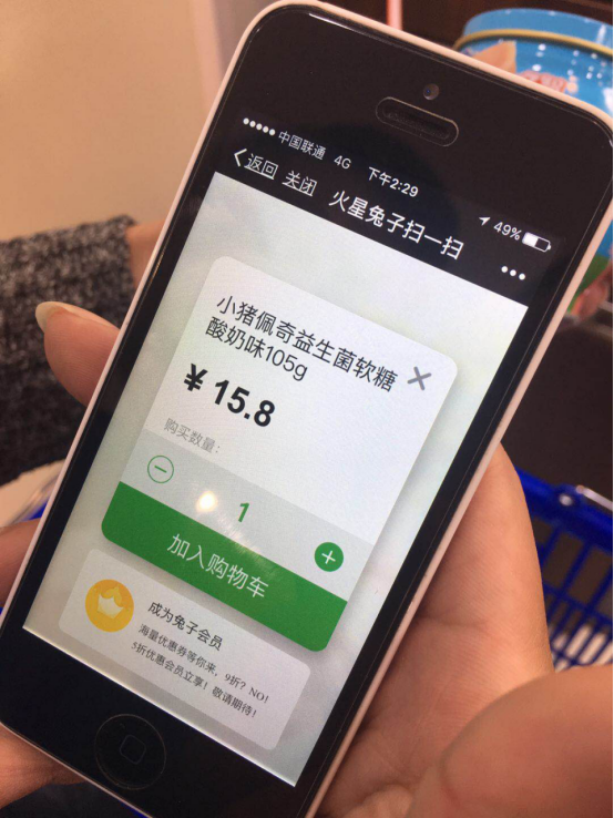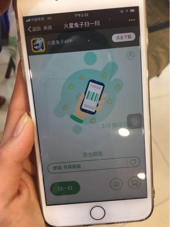 顧客選購商品時(shí)只需通過火星兔子微信公眾號或APP掃描商品二維碼加入購物車,選購?fù)瓿珊筮M(jìn)入支付頁面,選擇用微信或支付寶付款,付款完成后自動生成聚合碼,將該聚合碼出示給工作人員掃描后即可離店。